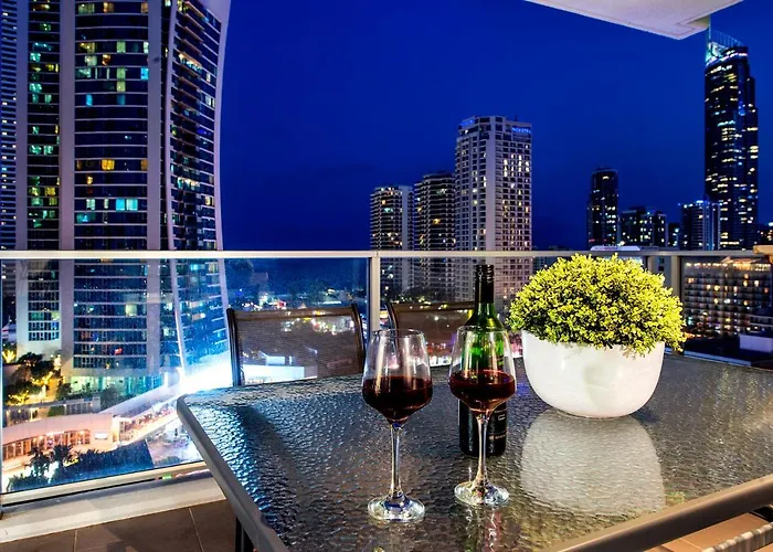 The spacious Circle On Cavil Holidays Gold Coast offers views of the pool and a location about 10 minutes' drive from Holoverse Amusement Park. Alongside a solarium, a steam room, and a Jacuzzi, guests can benefit from convenient features like a cash machine and a lift.